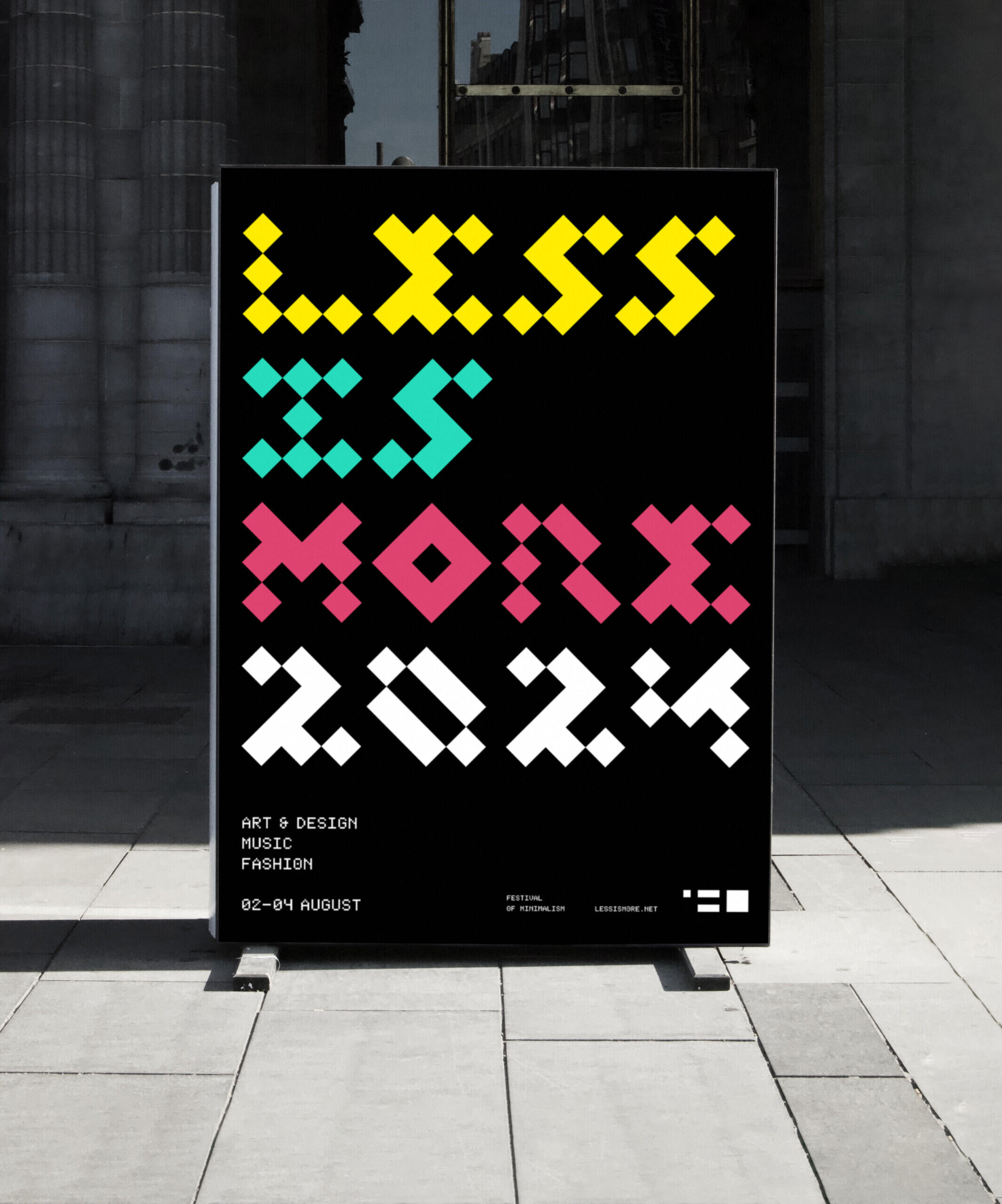 The brief was to produce a brand identity for a festival of minimalism.Minimalism relies on order. The minimalist art movement revolved around simple geometric shapes based on the square.The outcome was a design system appropriate for a minimalist context, with focus on the values of minimalism. One that can be applied across all mediums with ease.